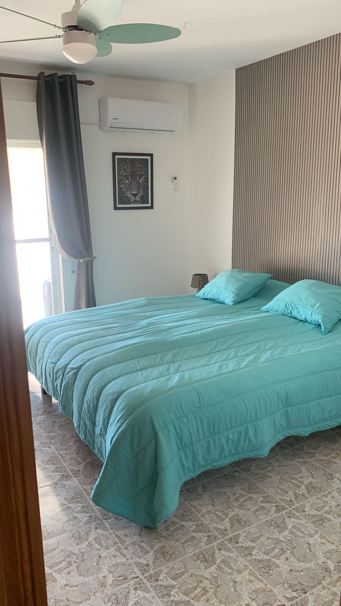 Dit appartement is voor 4 personen. Het appartement is voorzien van airconditioning. Er zijn 2 slaapkamers en 2 badkamers in het appartement. Beiden badkamers zijn voorzien van een toilet en een douche. Ook bevat het appartement een keuken met koelkast, inductieplaat en een oven. De woonkamer is ingericht met een bank, 2 stoelen en een televisie. Het appartement heeft een veranda met uitzicht op het zwembad en het dorp.